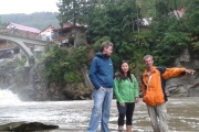 The Bily Slon campsite and the organization by Active Ukraine tour group combined to make a long weekend hiking trip and unforgettable experience. The easy first day hike through forests and hills, visiting a local farm stead and descending in the evening through the blossoming fruit trees was a good start. The second day was on one of the classic Carpathian tour routes, past waterfalls and wooden huts to the top of Pip Ivan mountain (2020m elevation I believe) and the ruined observatory building, meeting with a number of other happy hiking groups. From the top, and frequently along the way, long panoramas of ridgelines and snowfields, with mist and floating pine pollen forming clouds among the hills. A long day's hike, but well worth the effort, and only medium difficulty. The accommodations can meet varying standards, either in well-appointed two-level cabins with fireplace, private bath and sleeping for up to six, or two types of budget housing, in a group hostel with bunkhouse sleeping or in bungalows for groups of up to four - shower and toilet in the common bath house. Meals were plain and no alcohol is sold on site, but the hosts go out of their way to meet guests' needs.
