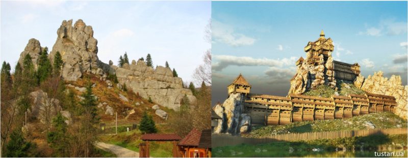 Soon we reach Glyboke village with a new museum in one of the oldest huts that have survived till nowadays. Here you can learn about the life, household and traditions of Boyky. A bit further we come across Tustan museum, where, owing to the 3D-models and artefacts, we will find out how did the unique multistoried wooden cliff-side fortress-city and customs site of the 9th-16th centuries look like. The site itself is half a kilometre behind, along with the replicas of the entrance gate and arms from the times of glory of the fortress. There is also a small market of local goods and souvenirs nearby.