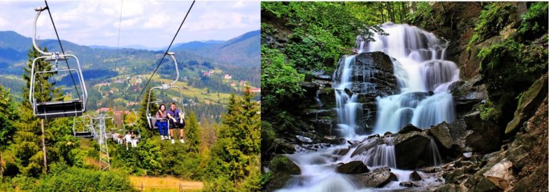 Slavske is one of the biggest Ukrainian winter sports centers, but it is good in the summertime either. There are ski lifts running all year round as well as in our next “checkpoint” Volosyanka. These villages along our itinerary maintain their authenticity, nonetheless their fame and popularity among the tourists. The further we ride, the more savage will be the localities. On the first day, we shall have a good workout while going up the pass, which is at the same time a frontier between Lviv and Transcarpathian regions. But the view from the top is worth the effort. Behind the pass the country road will bring us all the way down to the famous and magnificent Shypit waterfall.