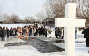 And the last one of the series of big winter holidays is Vodohrescha that comes on 19th of January. This holiday is connected with the event when the Christ was baptized in the Jordan river. On this day every church conducts a special ministering where they sanctify the water. After, everybody can take it home to use for special occasions during the year.