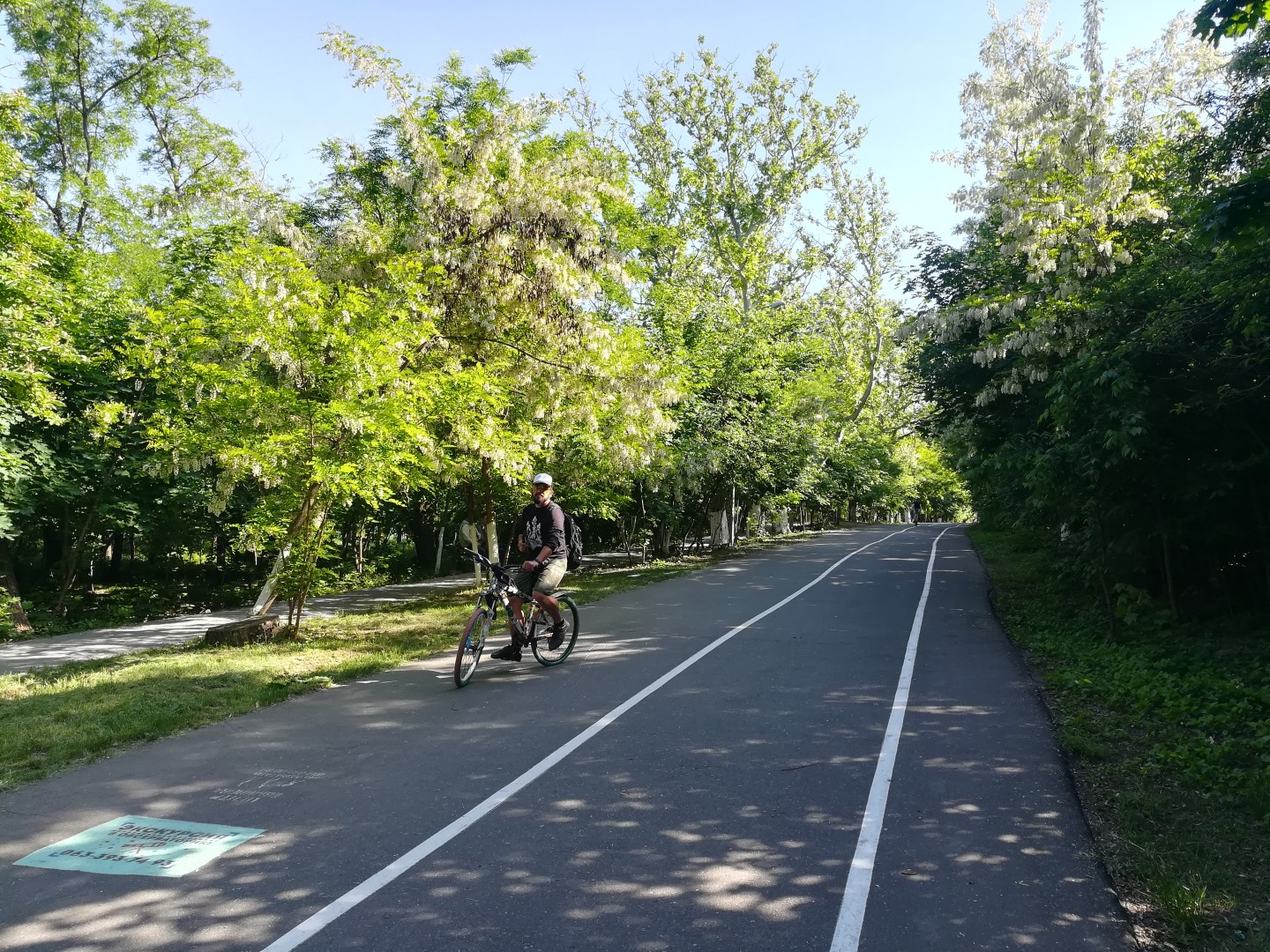 Later cycle along “the route of health”. The road runs along the shore of the Black Sea. Nature around is striking in its beauty. Planted trees provide welcome shade. A sea breeze brings the necessary refreshment.